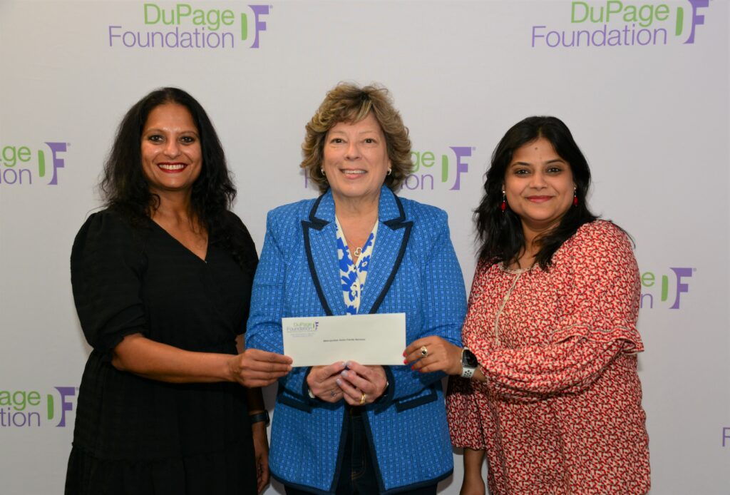 MAFS Grants Director Ms. Roshita Pandey and Public Benefits Specialist Ms. Radhika Subramanian receiving the Community Needs Grant from DuPage Foundation